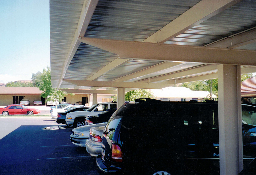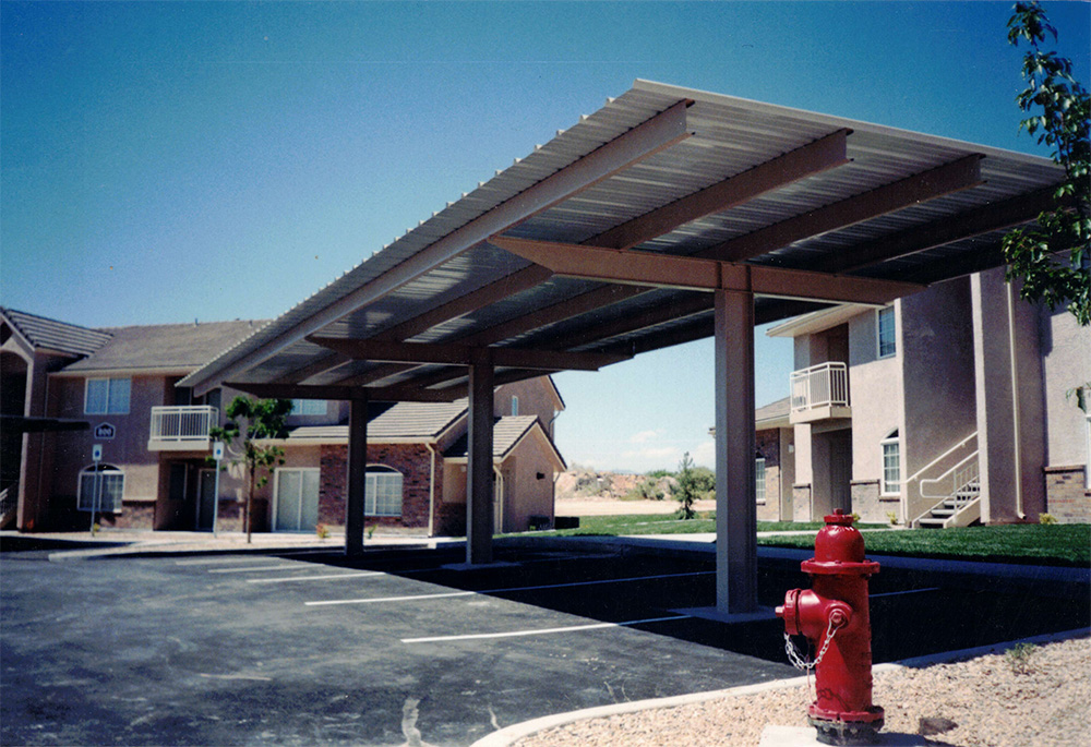 In the hot climate of St. George, UT, providing your customers, employees, or tenants with covered parking is an enormous value. Plus, when we have a hail storm rip through town, you can save a lot of headache knowing the cars on your property are protected by a sturdy steel parking cover.