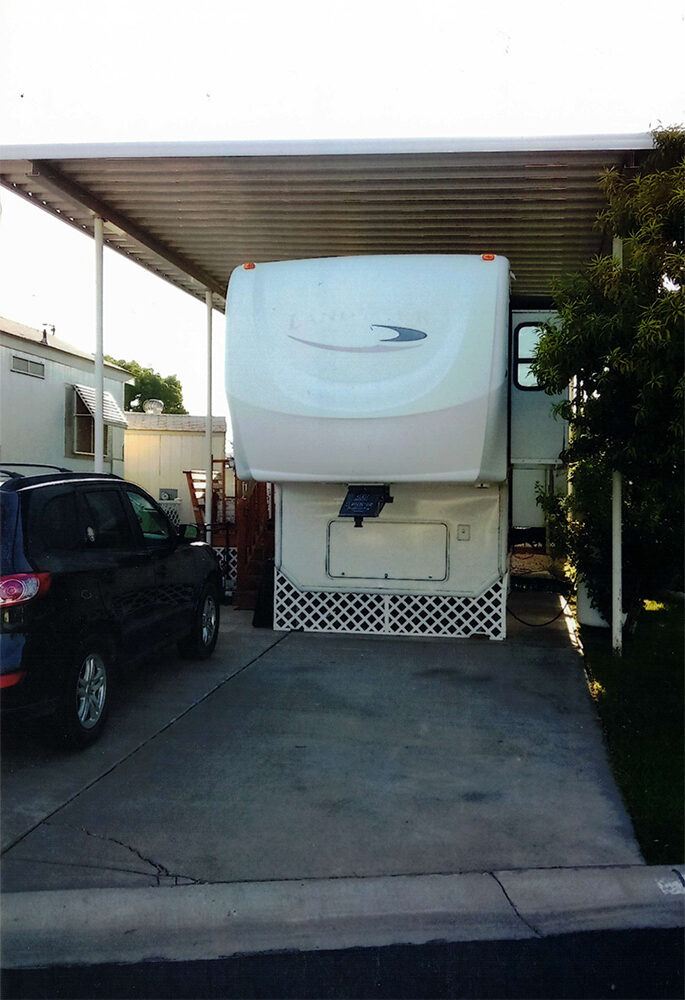 An RV or camping trailer without a cover, garage, or shelter, will spend its entire lifetime parked in the sunshine. The sun’s powerful UV light will wreak havoc on the paint job, causing flaking that will eventually turn to rust. It will also destroy tires leading to costly repairs and inconvenient blow-outs. When it comes to protecting your toys, don’t mess around!